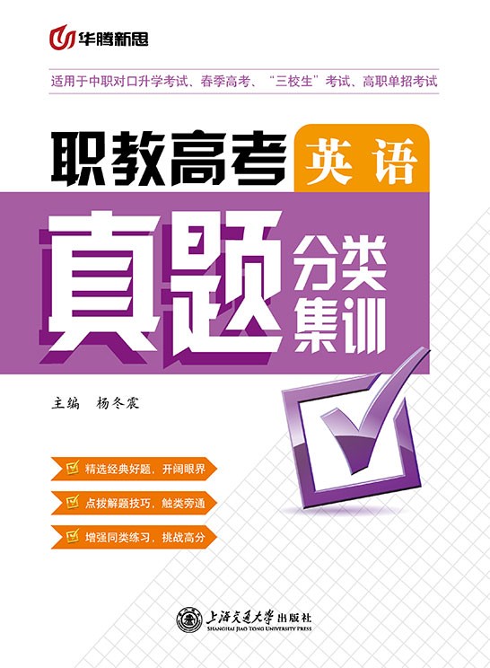 本书是职教高考三年级总复习用书,包括单项选择、补全对话、阅读理解、完形填空、短文/语法填空、翻译、改错和书面表达八个专项,每个专项包含命题趋势、真题集训、专项知识精粹、巩固练习、专项复盘。本书依据职教高考的基本要求和考试大纲,将全国多个省市的职教高考的真题按照知识点进行分类编写而成。每个专项里的真题选自全国17个省近五年真题。在每个专项中配有巩固练习,试题难度和知识点的考查,均与职教高考真题一致,可以很好地帮助考生把握考试难度,巩固所学知识,查漏补缺,提高应试能力。