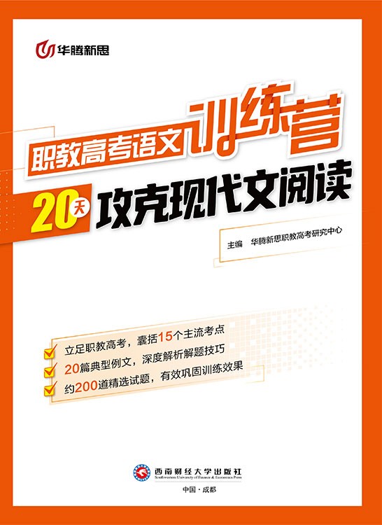《职教高考语文训练营:轻松攻克现代文阅读》依据职教高考的考试真题和最新考试大纲编写而成,是为参加职教高考的考生量身定做的复习用书。本书将中职生常见的现代文阅读进行专项归类,包含分析标题的含义和作用、分析段落的作用、概括文章的主要内容、探究文章的主旨等20个专题。本书在题型、难度等方面均参照了职教高考的真题和最新考试大纲,从职教高考的特色出发,做到既能把握考试的命题特点,又能体现其发展趋势。本书试题均配有参考答案及解析,既方便考生核对正误,又能帮助学生开阔解题思路,巩固所学知识,查漏补缺,达到考前练兵的效果。