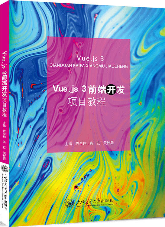 本书是针对 Web前端开发人员编写的一本快速掌握 Vue.js 3前端框架技术的教程。本书按照 Web前端开发职业岗位的实际需要编写而成,内容的编排符合初学者的认知,以“情境一任务”为主线,引导读者在学中做,在做中学,并注重启发读者,使读者熟能生巧,举一反三。