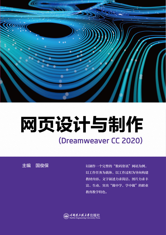 本书以Dreamweaver CC 2020为学习平台,通过制作一个完整的网站,使读者能够快速掌握知识要点,强化技能水平。全书共分为10个模块,内容包括:开启网页设计之旅——我的第一个网页,网站及站点的建立——规划和设计“数码资讯网”,使用HTML制作简单网页——制作“数码资讯网”首页,常见网页元素的添加——制作“智能手机”模块网页,表格的制作和应用——制作“平板电脑”模块网页,常用的超链接——“手机芯片”模块网页的制作,使用框架结构布局网页——制作“笔记本电脑”模块网页,使用DIV+CSS布局页面和控制页面元素——“新闻中心”网页模块的设计,表单和行为——制作“在线订单”模块网页,模板和库——制作“手机”模块网页。