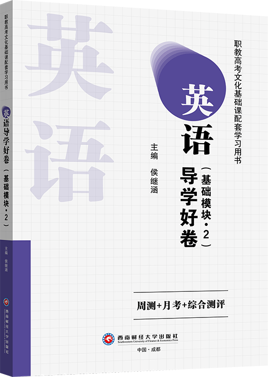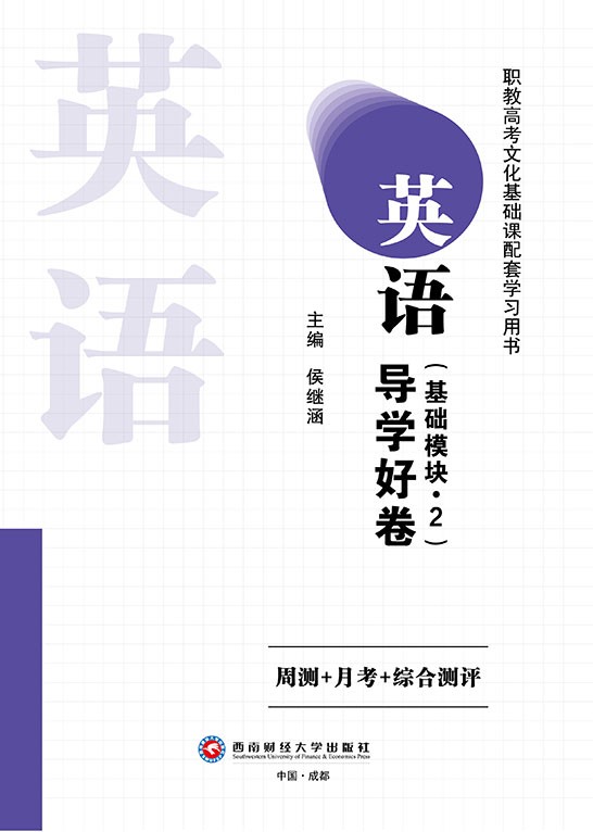 本书针对外语教学与研究出版社《英语基础模块2学生用书》设20套试卷,分20周,每周1套试卷。每单元配1套同步卷;每两个单元配1套复习卷和1套月考卷;针对前4个单元配1套复习卷和1套期中测试卷;针对后4个单元配1套复习试卷;最后配1套期末测试卷。具体安排:第1周针对第1单元,第2周复习第2单元,第3周复习第1、2单元,第4周为1套月考卷,以此类推。每套试卷含单词拼写、单项选择、补全对话、完形填空、阅读理解、翻译和书面表达七种题型。单词拼写考查《英语基础模块2学生用书》的重要词汇;单项选择考查《英语基础模块2学生用书》重点词汇、语法和交际用语。本书既可以作为中职一年级学生的学习资料,也可以作为中职学校教师教学的辅助资料。