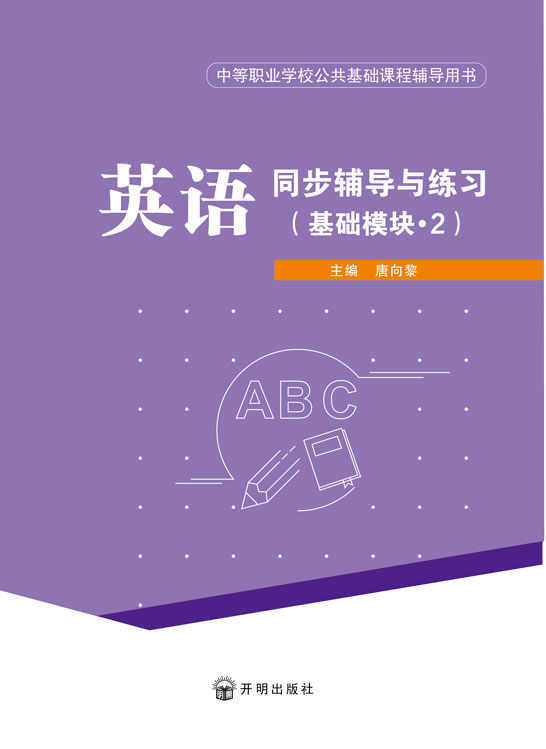 本书是根据中等职业教育对英语学科的基本要求接,并参照最新版的中等职业学校英语课程标准编写而成。全书共分为10个单元,每个单元包括知识梳理和课后巩固提高两个部分。知识梳理列出了最新版《英语》(基础模块·2)中每个单元学生需重点掌握的单词、短语和句型,并总结了本单元的重点语法。课后巩固提高分为基础巩固和能力提升两个部分。基础巩固包括单词拼写、单项选择、情景对话和完成句子,主要考查学生对本单元基础知识的掌握情况。能力提升包括完形填空、阅读理解和写作,旨在提高学生的阅读和写作能力,为今后的就业和学习打下坚实的基础。