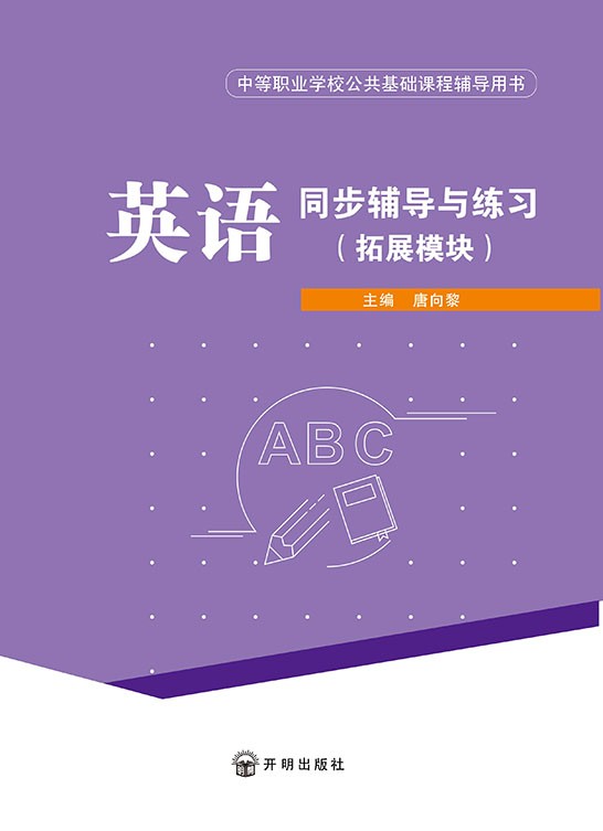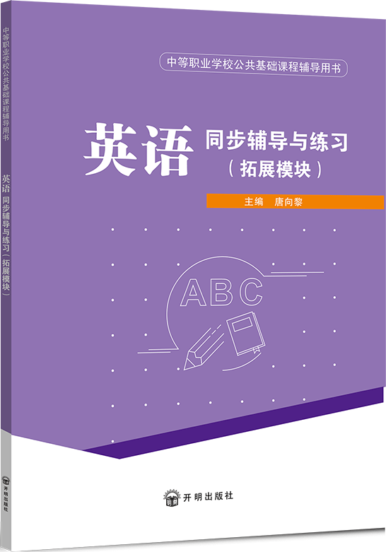 本书是根据中等职业教育对英语学科的基本要求接,并参照最新版的中等职业学校英语课程标准编写而成。全书共分为10个单元,每个单元包括知识梳理和课后巩固提高两个部分。知识梳理列出了最新版《英语》(拓展模块)中每个单元学生需重点掌握的单词、短语和句型。课后巩固提高分为基础巩固和能力提升两个部分。基础巩固包括单词拼写、单项选择、情景对话和完成句子,主要考查学生对本单元基础知识的掌握情况。能力提升包括完形填空、阅读理解和写作,旨在提高学生的阅读和写作能力,为今后的就业和学习打下坚实的基础。