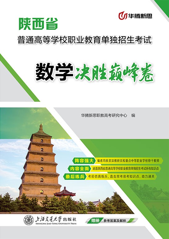 《陕西省普通高等学校职业教育单独招生考试数学决胜巅峰卷》是为参加陕西省普通高等学校职业教育单独招生考试的考生量身定做的复习用书,每套试卷的知识点的选取紧密结合教学内容,试题类型、试题难度等的设计均参照了历年考试真题和最新考试说明,依托教材,衔接真题,紧抓重点,精准训练。本书设置了数学决胜巅峰卷,题型与真题高度一致,知识点覆盖全面,难度与分值设置合理。考生可以利用本书模拟考试情景,更好地把握考情,学习必备的应试技巧,提高应试能力。