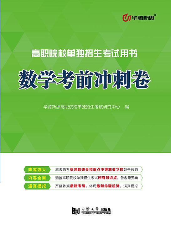 《数学考前冲刺卷》依据全国各省高职院校单独招生考试基本要求和考试大纲,并参照近几年全国各省高职院校单独招生考试数学真题编写而成.本书知识点覆盖全面,难易程度设置合理,将基础知识考查与解题能力训练相结合,能够帮助学生把握重点,找准方向,科学备考,高效学习.同学们可以利用本套试卷模拟真实考试场景,更好地把握考情,强化对基础知识的理解与运用,学习必备的应试技巧,切实提高应试能力.本书内容充实,结构严谨,要点突出,指导性强,是广大考生进行考试复习和储备知识的重要参考资料.