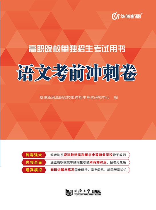 《语文考前冲刺卷》依据全国各大省的最新考试大纲,并参照近几年全国各大省单招各类考试语文试卷的真题题型进行编写。练习题由高职院校教师统一出题,在编写上注重内容与形式的结合,所选的材料与语文教学实际紧密结合。试题难度、知识点的考查都与高职院校招生考试语文真题的难度一致,可以很好地帮助考生把握高考难度,巩固所学知识,提高应试能力,达到掌握知识的目的。本书题量充足、结构严谨、要点突出、指导性强,是广大考生进行考试复习和储备知识的重要参考资料。